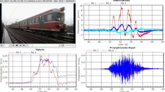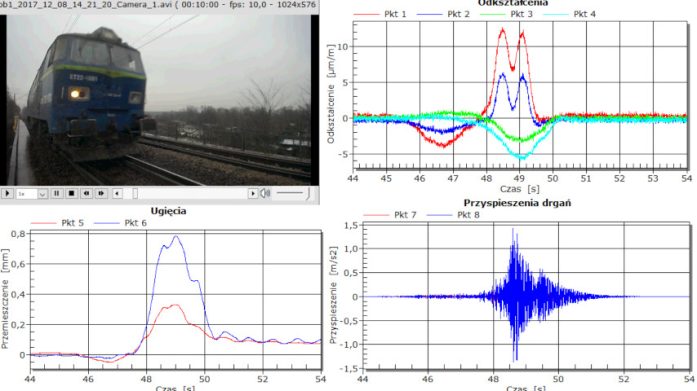 Wybrane reprezentatywne wyniki pomiarów w funkcji czasu, które zarejestrowano podczas przejazdów pojedynczej lokomotywy ET 22 po torze nr 1 oraz składu osobowego po torze nr 2, przedstawiono na rys. 3 i 4.