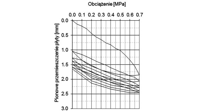 wraz z pomierzonym przemieszczeniem pionowym płyty w trakcie