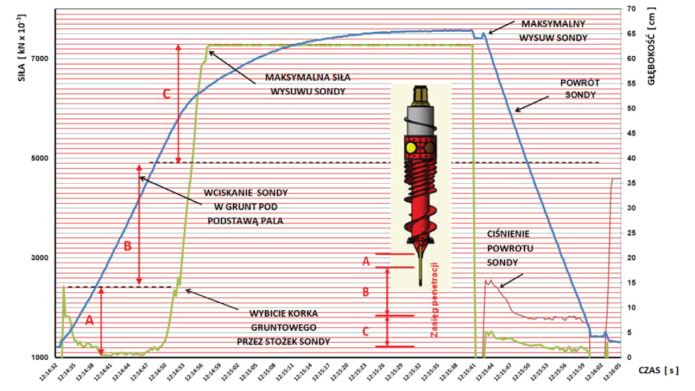 Rys. 6. Przykładowy wykres z sondowania podłoża pod podstawą pala EGP