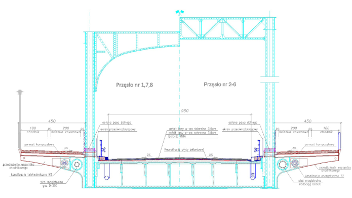 W tym przypadku zaprojektowano podłużny układ paneli GRP, eliminując konieczność użycia podłużnic i redukując zużycie materiału. To jednak wymagało szczególnego podejścia konstrukcyjnego w stosunku do elementów kompozytowych. Panele GRP musiały zapewnić pracę płytową pomostu dostosowaną do rozstawu wsporników, czyli maks. 6,5 m. Założenie to [...]