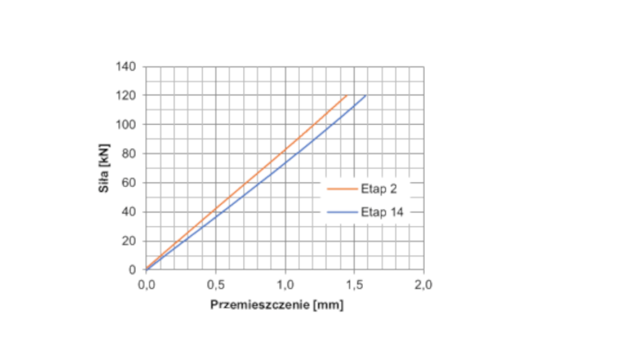 Rys. 4. Rysy w kluczu łuku pod obciążeniem ok. 600 kN – model LS1