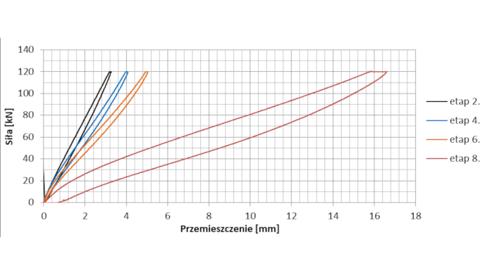 Podobne zależności jak w przypadku przemieszczeń były obserwowane dla odkształceń prętów i betonu. W przypadku modelu LS1 wartości amplitud odkształceń prętów zbrojeniowych i betonu w większości przypadków ustabilizowały się w 7. etapie obciążenia i pozostawały niezmienne do końca badania zmęczeniowego. Wartości pomierzonych w etapie 14. odkształceń modelu LS1 były w na podobnym poziomie jak w etapie 2. – przed obciążeniem [...]