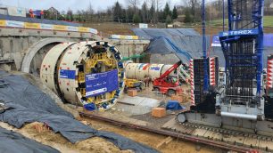 Na granicy Pisarzowej i Męciny w ostatnich miesiącach przygotowano zakład górniczy. To tu rozpocznie się drążenie dwóch tuneli o długości niemal 4 km, które kończyć się będą w Mordarce k. Limanowej. W jednym z nich kursować będą pociągi, drugi będzie pełnił funkcje ewakuacyjne. Obiekty wydrążą tarcze TBM, które będą równocześnie usuwać urobek i układać ściany tuneli. Pierwsza do działania przystąpi mniejsza maszyna – Kinga. Do Polski przypłynęła w grudniu i jest już gotowa do pracy. Ma 170 metrów długości i waży przeszło 600 ton. Cztery razy większa jest Jadwiga, która zajmie się budową tunelu przeznaczonego dla pociągów. Wszystkie jej elementy są już na placu budowy i inżynierowie składają je w całość. Zakładamy, że Jadwiga rozpocznie pracę w połowie roku.