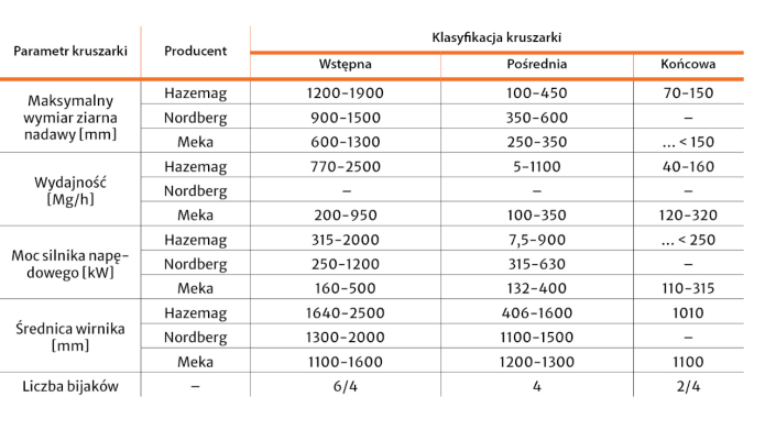 Kruszarki stosowane w węzłach rozdrabniania w górnictwie skalnym