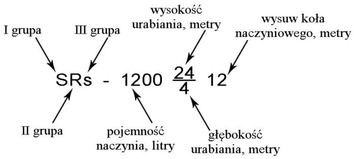 Każda maszyna posiada przydzieloną nazwę określającą jej parametry. Przykładowy sposób określania nazewnictwa wraz z wyjaśnieniem oznaczeń przedstawiają wzór (1)