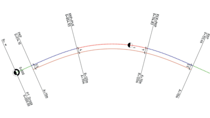 Rys. 6. Etapy definiowania linii przebiegu krawędzi jezdni uwzględniającej