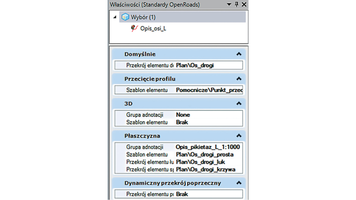 Od tej chwili wszystkie elementy liniowe można wyświetlać, stosując definicję Os_drogi_L, uzyskując efekt pokazany na rys. 4.