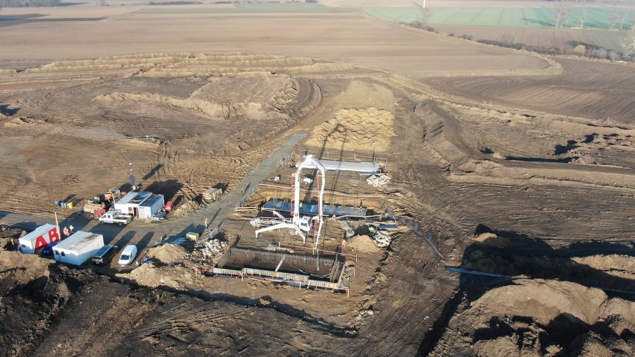 W okresie zimowym prowadzono wykopy pod fundamenty, palowanie oraz próby obciążeniowe, a także prace związane z przebudową kanalizacji sanitarnej. Kontynuowane jest usuwanie warstwy humusu. W najbliższych tygodniach planowane są roboty związane z posadowieniem obiektów inżynierskich oraz usuwaniem pozostałości po wycince drzew.