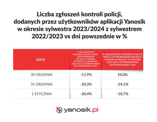 Sylwester 2023/2024 – Yanosik raportuje, co się działo na drogach