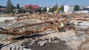 Budowa mostu tymczasowego w Głuchołazach