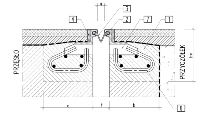 Rys. 4. Przekrój jednomodułowego urządzenia dylatacyjnego [1]