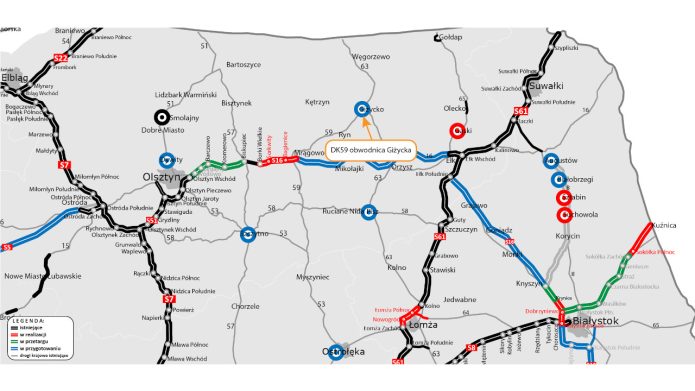 Istniejąca obwodnica Giżycka (ul. Obwodowa) ma obecnie w większości przekrój jednojezdniowy. Jej rozbudowa będzie kontynuacją zakończonej w 2021 roku inwestycji obejmującej budowę ronda na skrzyżowaniu DK59 z ulicą Świderską wraz z rozbudową istniejącego układu drogowego do przekroju dwujezdniowego na odcinku około 1 km. Planowana inwestycja obejmie kolejne 1,5 km DK59 od wyżej wymienionego ronda w kierunku Wilkas. Będzie to droga klasy GP (główna ruchu przyspieszonego) o przekroju 2×2 i nośności 11,5 tony na oś.