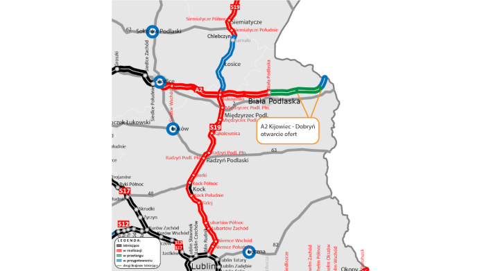 GDDKiA upubliczniła oferty w przetargu na wykonanie projektu technicznego i wykonawczego oraz budowę ponad 9 km autostrady od m. Kijowiec do węzła Dobryń, która umożliwi w przyszłości dojazd do terminala samochodowego Koroszczyn (woj. lubelskie). Zainteresowanych jest dziewięciu wykonawców.